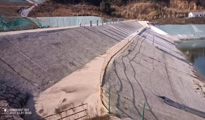 1、項目概況 湖北宜化松滋肥業(yè)有限公司界山寺磷石膏庫位于湖北省松滋市陳店鎮(zhèn)李橋村界山寺,場區(qū)東南側約2km為湖北宜化松滋肥業(yè)有限公司生產廠區(qū),場區(qū)東側100m為254省道。場地交通便利。 湖北宜化松滋肥業(yè)有限公司占地面積約1220畝,設計總庫容為2400萬方,最終堆積標高152m,總堆積高度87m,屬三等庫。該庫屬山谷型磷石膏庫,庫尾向壩前干堆的方式堆存。擋水壩為不透水土石壩,壩底標高62.0m,壩頂標高76.6m,壩高14.6m,壩軸線長137.25m,壩頂寬度4.1m。攔擋壩為碾壓土壩,壩軸線長145.0m,壩頂寬度5.0m,壩頂標高81.0m,壩底標高65.0m,壩高16.0m。采用排水井-排水涵管、溢洪道—排水明渠和截水溝排水?,F(xiàn)堆存量約2215萬方,還有185萬方剩余庫容,分布在兩個地方,第一是支溝處,庫容約120萬方,第二是主溝與支溝的連接處,庫容約65萬方,合計剩余庫容為185萬方。 2、主要危險、有害因素評價結果 該磷石膏庫存在的危險、有害因素主要有:潰壩、洪水漫頂、滲漏、結構破壞、壩坡失穩(wěn)、高處墜落、淹溺、車輛傷害、觸電、泥石流。存在的主要職業(yè)危害因素有:粉塵、噪聲。 3、評價結論 湖北宜化松滋肥業(yè)有限公司磷石膏庫采用干法堆存,磷石膏庫攔擋壩和堆積壩的壩體抗滑穩(wěn)定性系數(shù)在現(xiàn)狀條件下滿足規(guī)范要求,庫內排洪系統(tǒng)在未遭受破壞的情況下,庫內排洪系統(tǒng)基本能滿足規(guī)范要求,安全管理機構及人員配備基本滿足安全管理需要,安全度判定結果為正常庫。 綜上所述,湖北宜化松滋肥業(yè)有限公司磷石膏庫安全設施符合有關安全生產法律、法規(guī)、規(guī)章、規(guī)范性文件和標準、規(guī)范的要求,安全設施有效、可靠。 |
